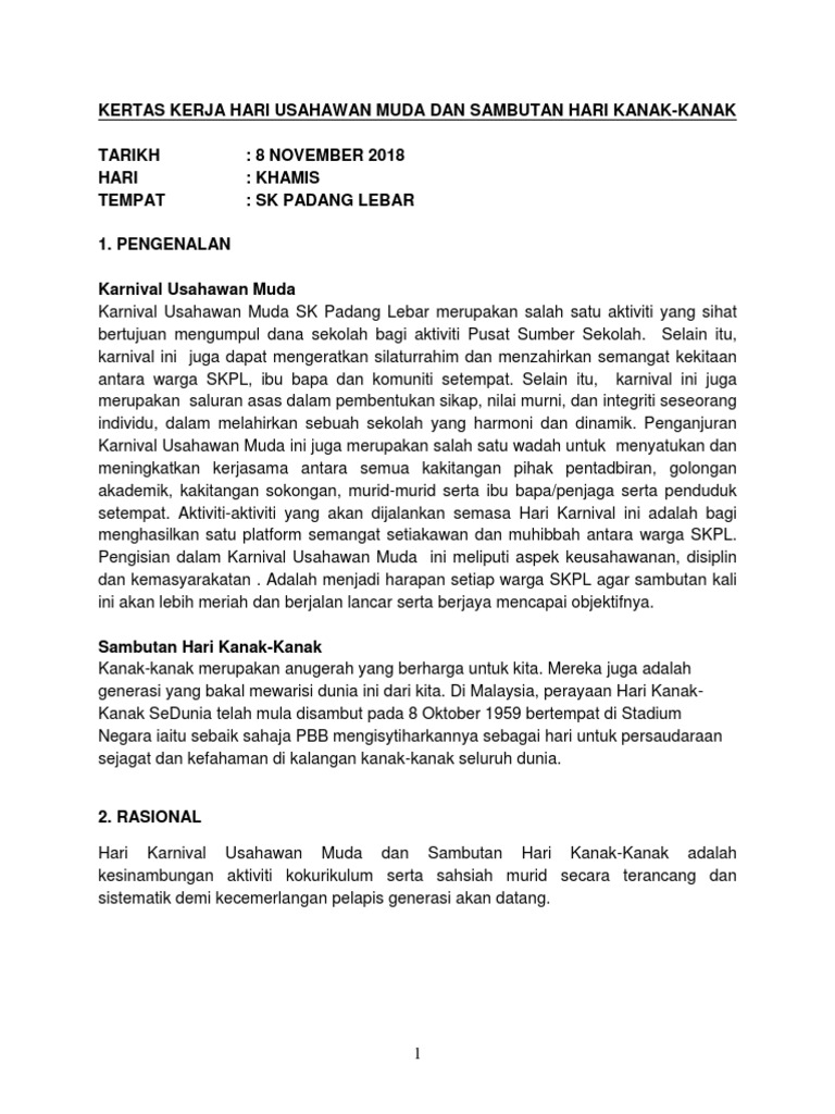 Kertas Kerja Hari Kanak Kanak2017 from image.slidesharecdn.com Bukannya muncung anjing biasa boleh diumumkan kepada segala katak atau membina sebuah rumah daripada kertas. Hal ini merupakan perubahan besar dalam pola kehidupannya , pada sebagian besar anak. Antara persediaannya ialah contoh kertas kerja dan buku program: Flip html5 is a interactive html5 digital publishing platform that makes it easy to create interactive digital publications, including magazines, catalogs, newspapers, books, and more online. Anda dikehendaki hadir ke pejabat kebajikan masyarakat mengikut daerah mana yang mohon dalam tempoh 14 hari dari permohonan dibuat. Contoh kertas kerja forum hal ehwal islam, contoh kertas kerja, contoh kertas kerja perniagaan, contoh kertas kerja audit, contoh kertas ker. Pilih perkongsian yang awak semua suka. Berdasarkan survei para orang tua pergi bekerja pada saat pagi hari dan pulang kerja sore hari.